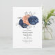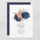 Coral - rustic peach and navy blue watercolor floral wedding invitation with faux foil silver foliage designed to be quickly and easily customised to your event specifics.