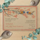 Coral Navy Love Bird Cherry Blossom Wedding Invitation