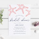 Our coastal chic bridal shower invitations feature classic nautical styling with a clean, minimalist look and a lighthearted touch of marine life. Design features three vibrant coral starfish illustrations at the top, with your bridal shower details beneath in a chic combo of navy blue serif and sans serif lettering. Perfect for nautical, summer, or beach theme bridal showers.