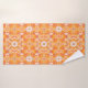 Towel set in a batik medallion pattern in shades of coral orange, cream, and beige