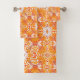 Coral Orange and Cream Batik Medallion Pattern Bath Towel Set