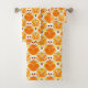Coral Orange and Cream Batik Pattern Bath Towel Set
