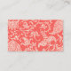 Make a lasting impression with this elegant and customisable business card. The design features a vibrant coral background on the left side, providing a clean and modern space for your contact information. The right side of the card is adorned with a detailed white paisley pattern, adding a touch of sophisticated, vintage-inspired style.