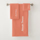 Coral Peach Elegant Signature Monogram Bath Towel Set