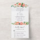 Coral Peach Floral Flowers Wedding All In One Invi Invitation