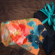 Coral Peach Indigo Navy Blue Roses Floral Neck Tie