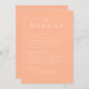Ensure your guests have all the essential information with this Coral Peach Modern Minimalist Wedding Details Card. Featuring a soft peachy-coral background with refined light coral typography, this design embraces modern minimalism with a warm and sophisticated touch. The combination of a sleek serif font and a delicate script accent creates a contemporary yet timeless aesthetic. Fully customisable, this details card is perfect for including venue directions, accommodations, or any additional wedding information, making it a seamless part of your elegant wedding stationery suite.