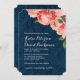 Coral Peonie on Navy Wedding Invitation