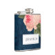 Coral Peonies and Navy Feathers Bridesmaid Flask