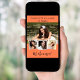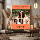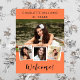 Create your own unique photo collage. Use four, 4 of your favourite photo. Personalise and add a name and age. Coral, orange coloured background, black text.