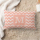 Coral Pink and White Chevron with Custom Monogram. Lumbar Cushion