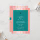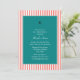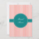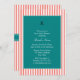The design features an alternating coral pink and white stripes pattern on the background. An elegant striped pattern and in the middle there is a teal rectangle where to add your invitation's text.