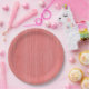 Coral Pink Bamboo Wood Grain Look Paper Plate