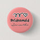 Coral pink bridesmaid buttons with cute whimsical love heart and elegant font. Cute print for bachelorette party, bridal shower and wedding party. Visit our fun store for more classy and fancy designs for marriage. Customisable background colour.
