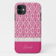 This case features a unique and elegant coral and white damask pattern on the top, and a solid coral personalised bottom. The two are separated by a white "ribbon". Easy to customise. **Please note -- the image is printed on the case, which contains no actual ribbon or fabric.**