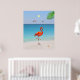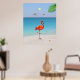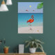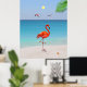 Coral Pink Flamingo & Palm Leaf on the Beach Poster
