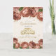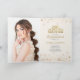 Elegant pink and coral watercolor floral Quinceañera birthday party folded invitation with gold glitter, bokeh, and string lights. Decorated with a golden tiara. The inside of this card gives you a space to add a special photo.