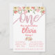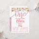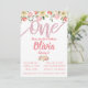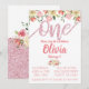 Coral & Pink Glitter Floral First Birthday Party Invitation