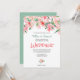 This is a pretty floral wedding invitation for spring or summer. It features a top border of coral pink flower images nestled among soft mint green leaves. Your custom text is in darker green, coral pink, and gray at the center on a white background. Text areas are separated by a smaller matching floral image. The back of the invitation is solid matching mint green. *This design uses artwork from LABFcreations.