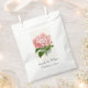 Elegant cream coloured favour bag with lovely artwork of a coral pink hydrangea. Personalise the black custom text for wedding event. Great for candy and sweets bars.