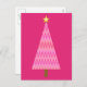 Postcard with a simplified modern take on a classic Christmas tree motif, coral pink, satin textured ombre with a deep fuchsia pink background