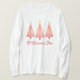 Tee in a modern take on a classic Christmas tree motif - three trees in a coral, pale pink and deep pink ombre pattern, with the text "O Christmas Tree"