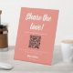 Coral Pink QR Code Share the Love Wedding Photo Pedestal Sign