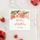 This beautiful and elegant napkin features watercolor coral pink red roses and foliage. The text combines handwritten script and serif fonts for a stylish and modern look. This is perfect for a spring or summer rustic birthday.
