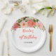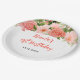 Coral Pink Red Roses Floral Birthday Paper Plate