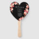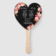 Coral Pink Roses on Black Wedding Ceremony Program, Heart Shap Hand Fan.
