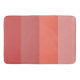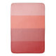 A photograph of a coral colour necklace transformed into this shades of pinks, striped bath mat with matching shower curtain.