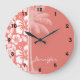 Coral Pink Tropical Hibiscus; Summer Palm Large Clock