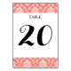 Coral Pink White Classic Damask Pattern Table Number
