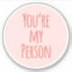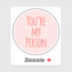 Sweet and girly love stickers with a coral pink typography quote that says You're My Person on a blush pink background.
