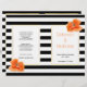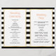 Outstanding coral poppies and black, white stripes folded wedding ceremony and party program. Gorgeous pippy flowers adorn this elegant chic and modern wedding design. Your text is placed on white frames with gold outlines. Choose the value paper as it folds well and you will have to fold it in half.