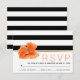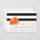 Coral poppy, black white stripes wedding RSVP Card