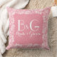 Elegant monogramed coral red tones linen and white vintage girly floral lace frame. Linen look is an image and not real linen.