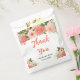 This beautiful and elegant wedding favor bag features watercolor coral pink red roses and foliage. The text combines handwritten script and serif fonts for a stylish and modern look. This is perfect for a spring or summer rustic wedding.