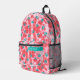Coral Red Shibori Topaz Blue Paw Pattern Cute Printed Backpack