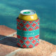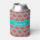 Coral Red, Teal Moroccan #5DS Teal Name Monogram Can Cooler