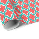 Coral Red Teal White Moroccan Quatrefoil #4DS Wrapping Paper