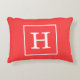Coral Red White Framed Initial Monogram Decorative Cushion