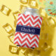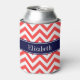 Coral Red White LG Chevron Navy Blue Name Monogram Can Cooler