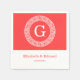 Coral Red Wht Greek Key Rnd Frame Initial Monogram Napkin
