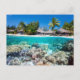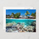 Beautiful shot of the coral reef and the bungalows of exotic tropical resort