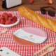 Modern and girly baby shower plate design featuring a red coral design by Shelby Allison.
