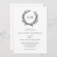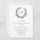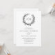 Perfect for beach and nautical themed weddings, a coral wreath frames the monogram initials of the bride and groom at the top of this elegant minimal coastal invitation with a white background and dark grey text.