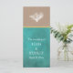 Coral reef teal blue and sand kraft paper beach wedding ceremony and party program showcasing a white coral reef on kraft style paper that covers the upper of the card, a teal blue grunge background with your text and a gold stripe. The back includes teal blue stained background with text in white.