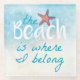 Beach quote "the Beach is where I belong" on water and sand background with a coral starfish. Design by Jenn's Emporium.