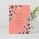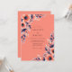 This vibrant design features a bold coral backdrop accented by lush floral arrangements. Elegant navy blue foliage contrasts beautifully with soft peach anemones and delicate watercolor sprigs. The overall mood is sophisticated and romantic, making it ideal for a bright seasonal event.